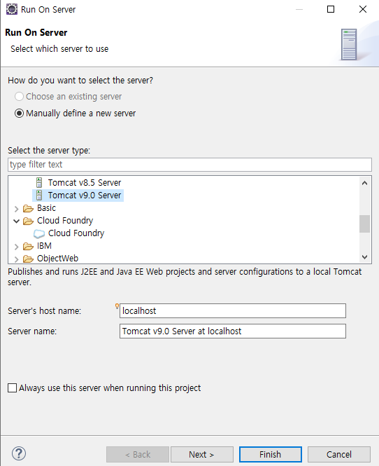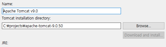 브라우저에서 아까 톰캣을 다운받았던 디렉토리를 선택합니다. 톰캣폴더까지만 지정해주면 됩니다.
