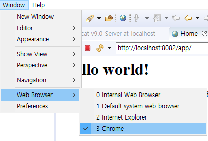 그리고 이클립스에서 서버가 계속 뜨면 불편합니다 저는 불편하더라고요... 크롬에서 바로 자동실행되게 만드는 법을 소개하겠습니다