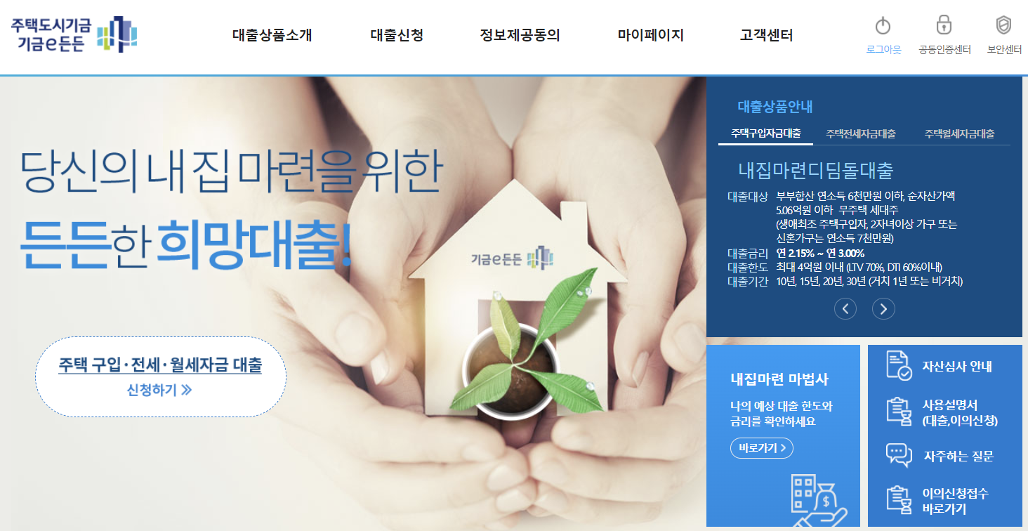 위 과정을 다 거치고 기금e든든 사이트에서 대출 신청하기 버튼을 눌렀다. 입력해야 할 것들은 어려운 것 없이 입력을 하면 된다.