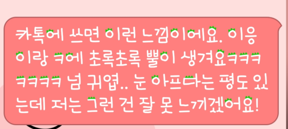 글자 몇 군데에 연두색 뾰족뾰족한 그림이 올라가 있는데, 너무 귀엽다.