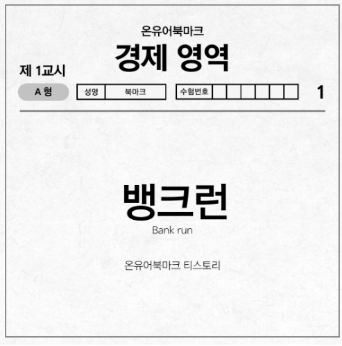 은행 영업정지 발표 후 예금 가입자들이 한꺼번에 돈을 인출해 가는 현상을 ( )이라고 한다.