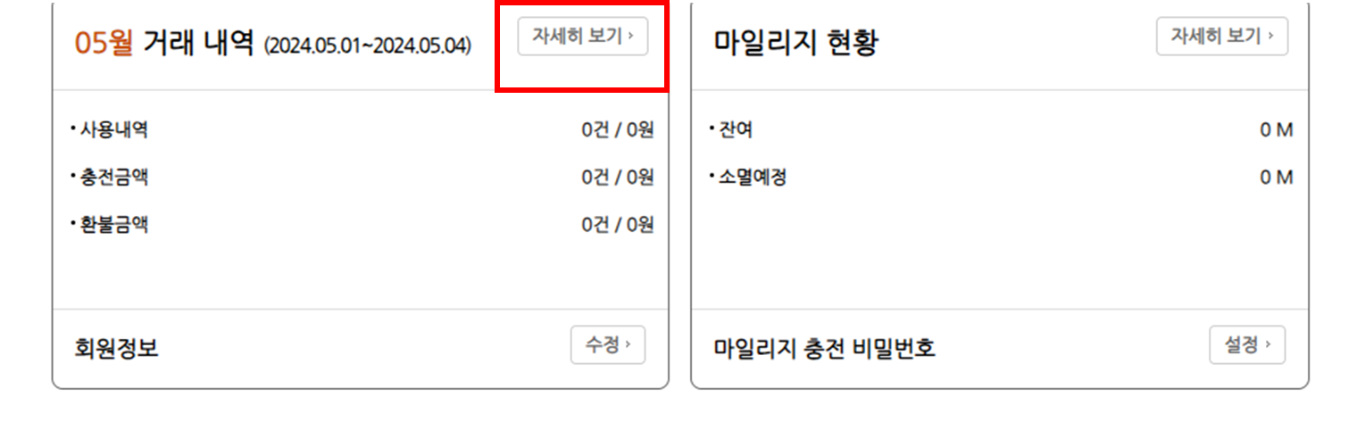 4. 조회후 다음과 같은 사용내역이 뜨는 것을 확인할 수 있습니다.