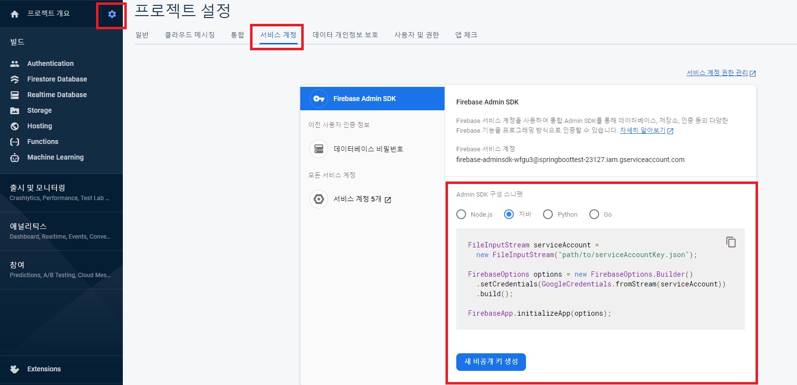 part 1 스프링부트 프로젝트에 파이어베이스를 연동